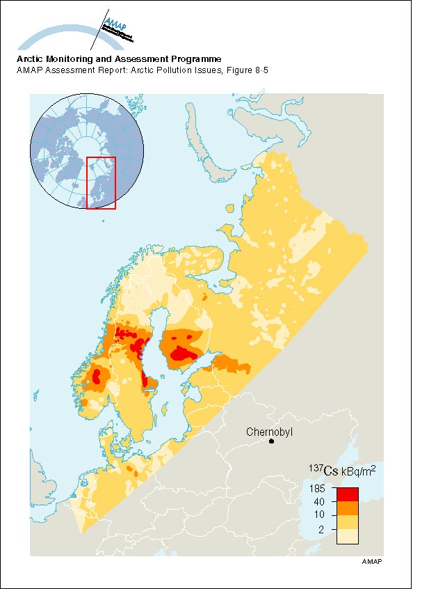 Ground deposition of 137Cs from the Chernoybl accident (values normalised to May 10, 1986)