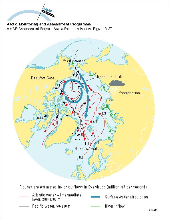 Macdonald, R.W. and J.M. Bewers, 1996. Contaminants in the arctic marine environment: priorities for protection. ICES J. mar. Sci. 53: 537-563. (AAR Figure 3.27)