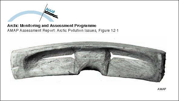 Traditional Inuit slit goggles from Greenland; the goggles protect the eyes against ultraviolet radiation