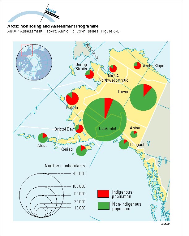 Total and indigenous populations of Arctic Alaska, by Native Regional Corporation region