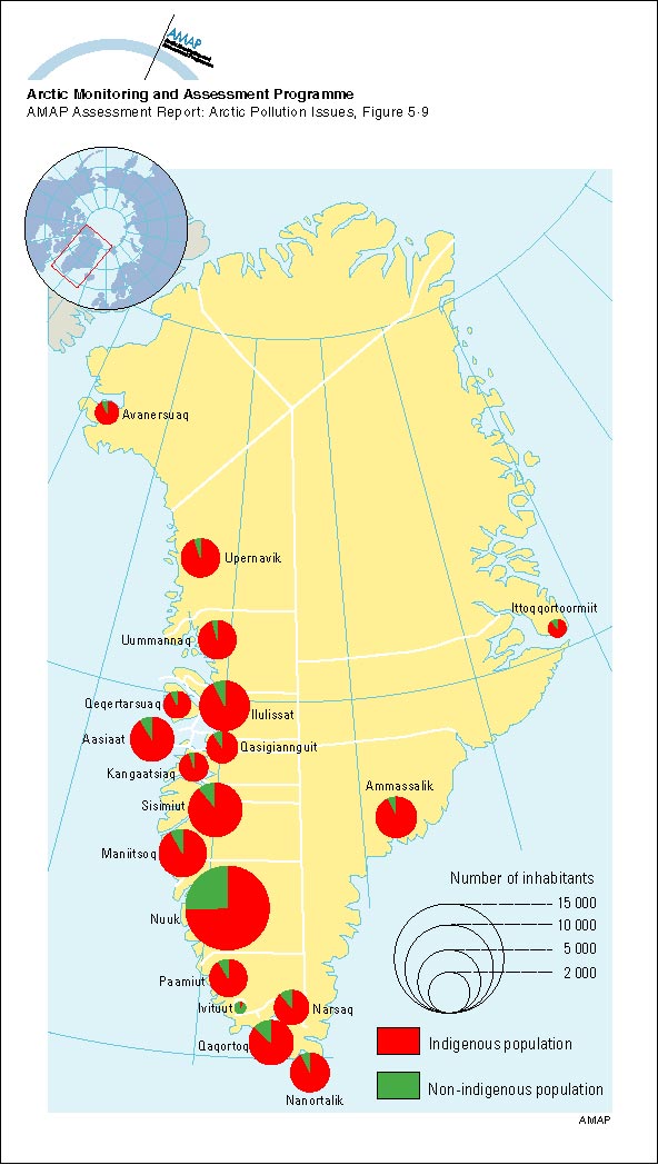 Opgørelser fra Grønlands Statistiske Kontor, 1994. Befolkning. Grønlands Statistiske Kontor, Nuuk. (AAR Figure 5.9)