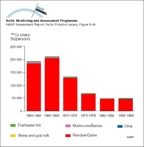 Yearly intake of 137Cs from various dietary components by the ‘selected’ population of western Arctic Russia