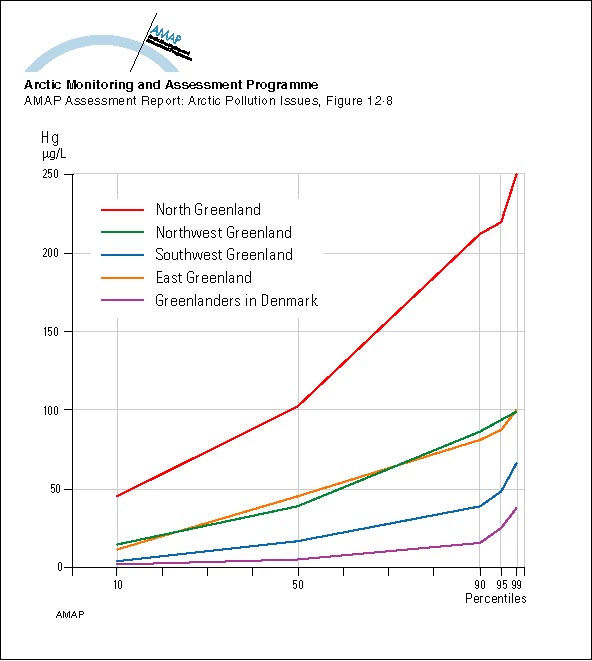 Hansen, J.C., 1988. Exposure to heavy metals (Hg, Se, Cd & Pb) in Greenlanders. A review of an arctic environmental study. Doctoral thesis, University of Aarhus, Depart-ment of Environmental and Occupational Medicine. (AAR Figure 12.8)