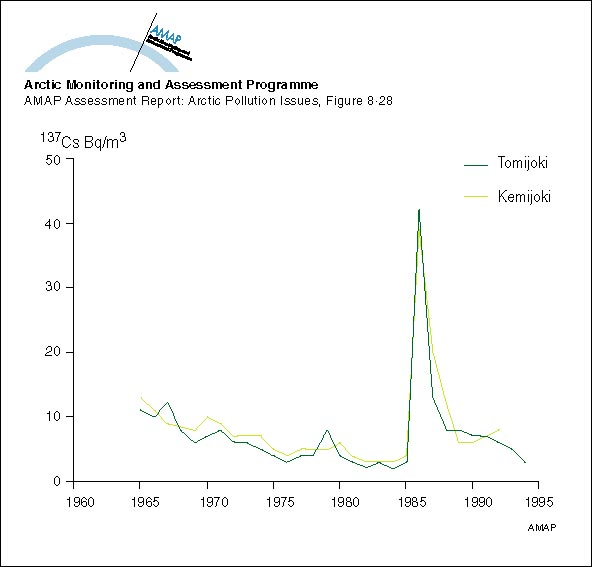 Changes with time in activity concentration of 137Cs in Finnish rivers