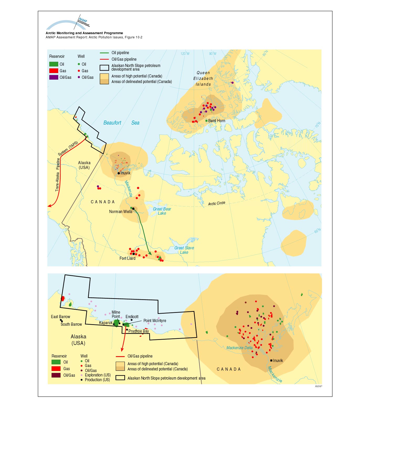 Major oil and gas development areas in Arctic Canada and on the Alaskan Beaufort Sea coast