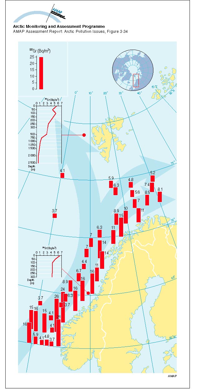 Kautsky, H., 1987. Investigation on the Distribution of 137Cs, 134Cs and 90Sr and the water mass transport times in the Northern North Atlantic and the North Sea. Dt. Hydrogr. Z. 40: 49-69. (AAR Figure 3.34)