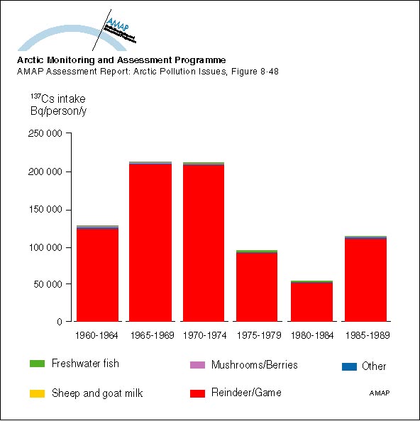 Yearly intake of 137Cs from various dietary components by the ‘selected’ population of Arctic Norway