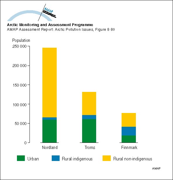 Distribution of the population of the three Arctic Norwegian counties