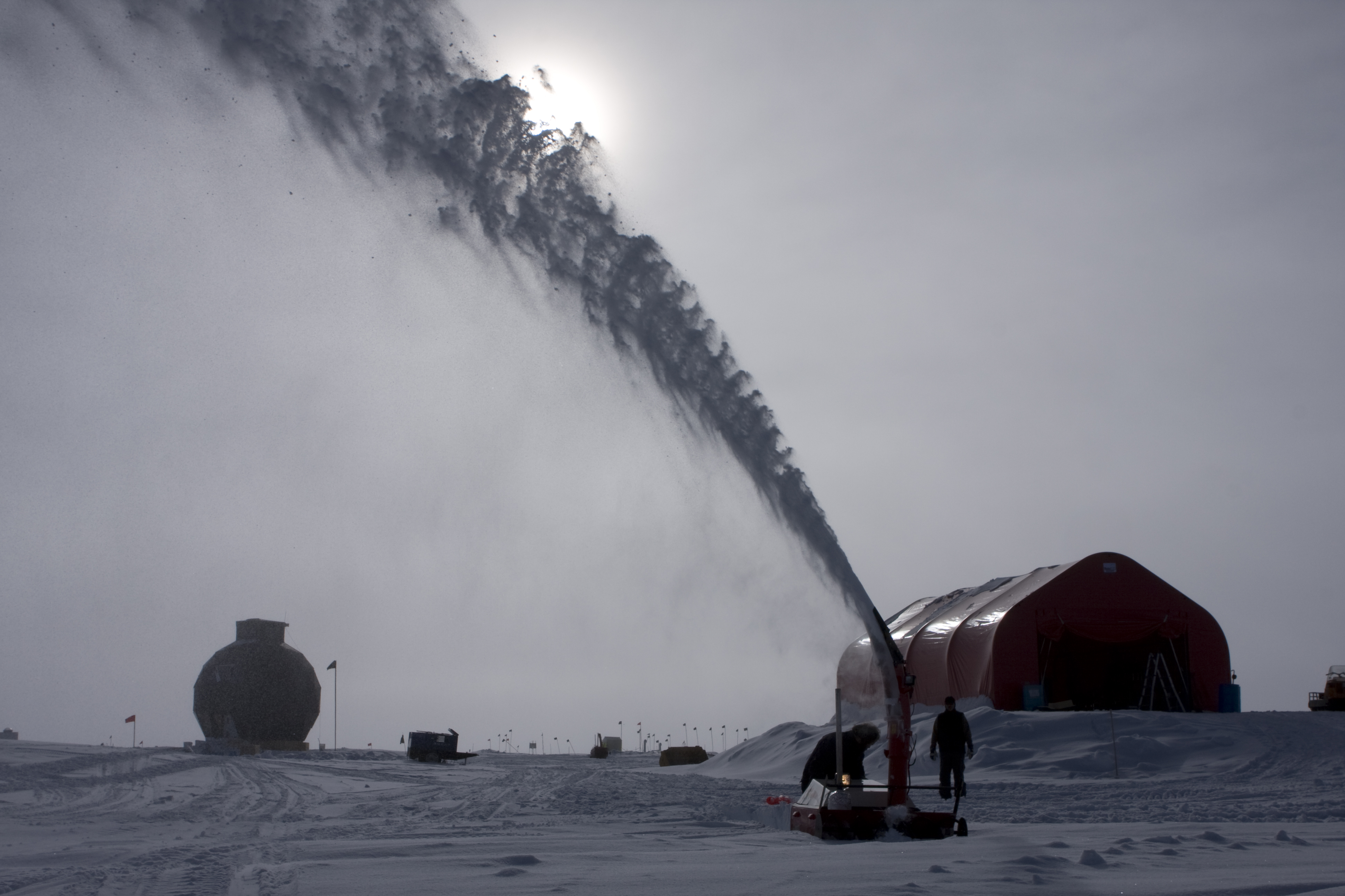 Clearing snow drifts in downtown areas is an almost constant job. NEEM ice coring camp at the Greenland Ice Sheet