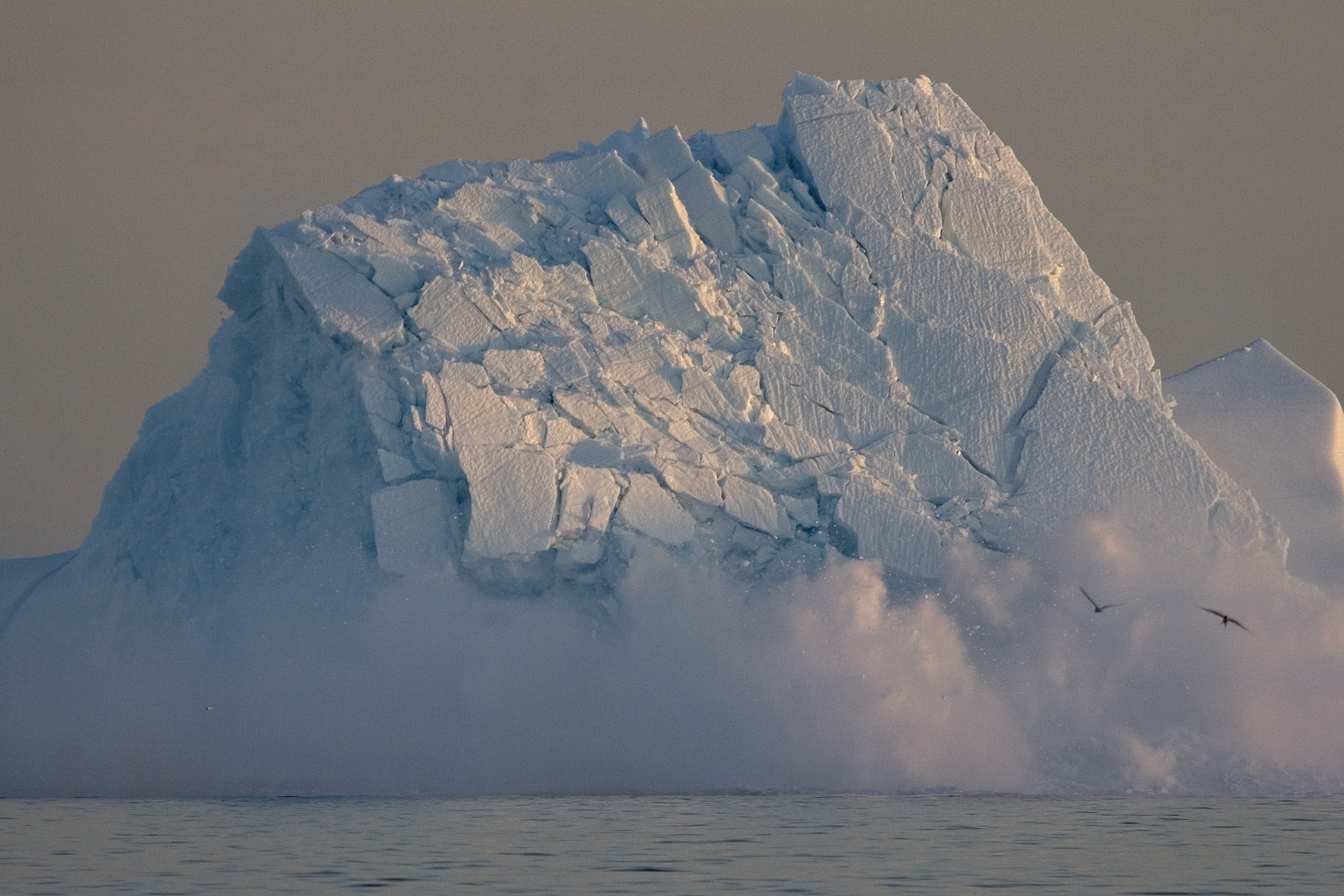 An iceberg collapses, Disko Bay, West Greenland