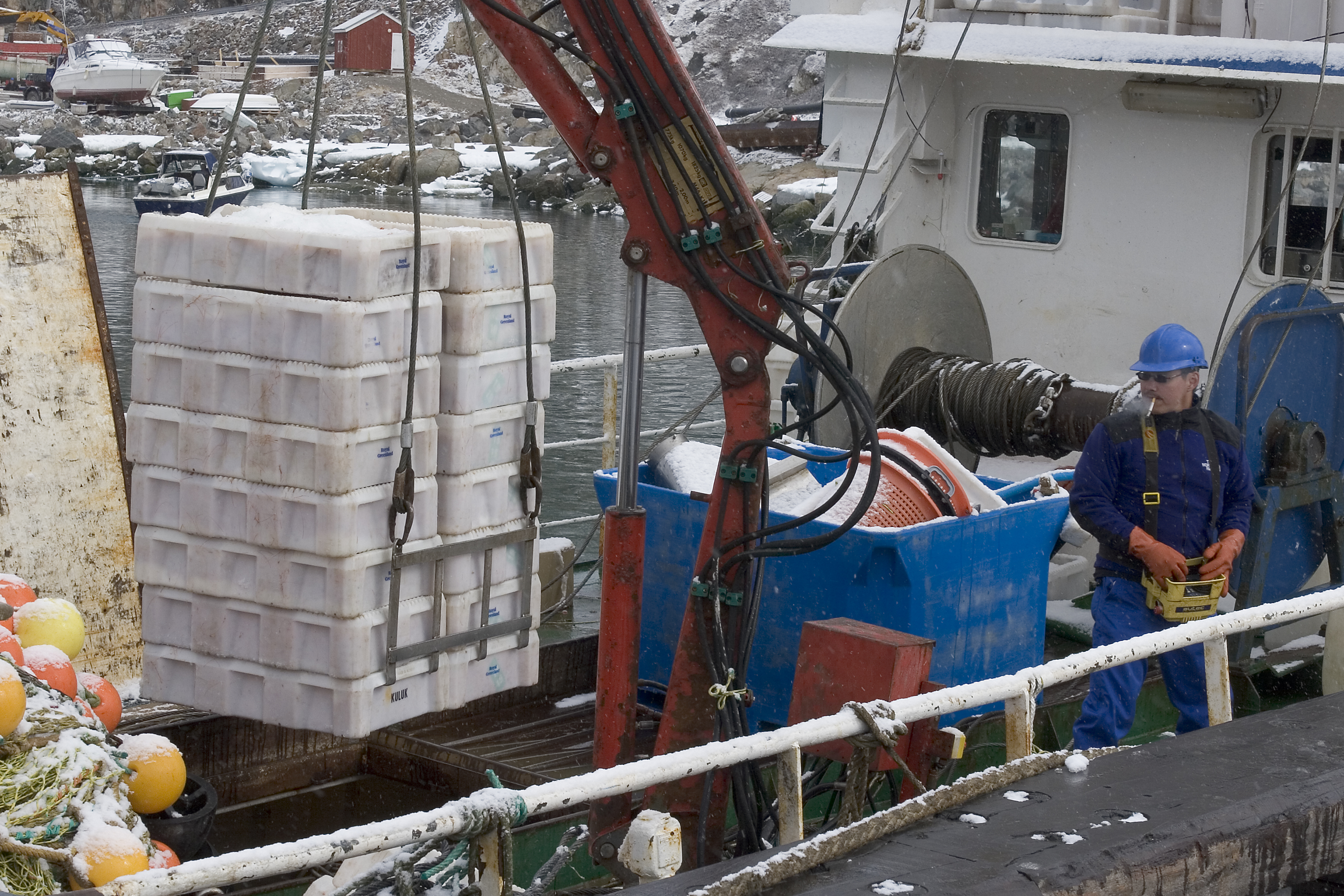 Unloading the shrimp harvest in the harbour of Ilulissat, West Greenland