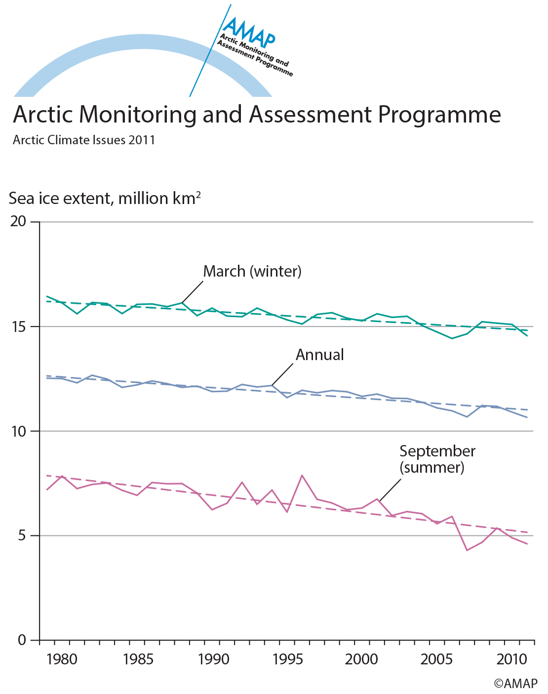 AMAP, 2012. Arctic Climate Issues 2011: Changes in Arctic Snow, Water, Ice and Permafrost. SWIPA 2011 Overview Report. Arctic Monitoring and Assessment Programme (AMAP), Oslo. xi + 97pp